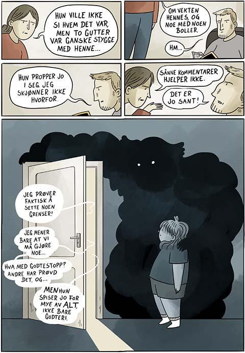 – Jeg har vært bevisst på å ikke skrive eller tegne noe som er unødig triggende. For å passe på dette har jeg jobbet sammen med en veldig dyktig og klok fagkonsulent, med lang erfaring i å jobbe med spiseforstyrrelser.