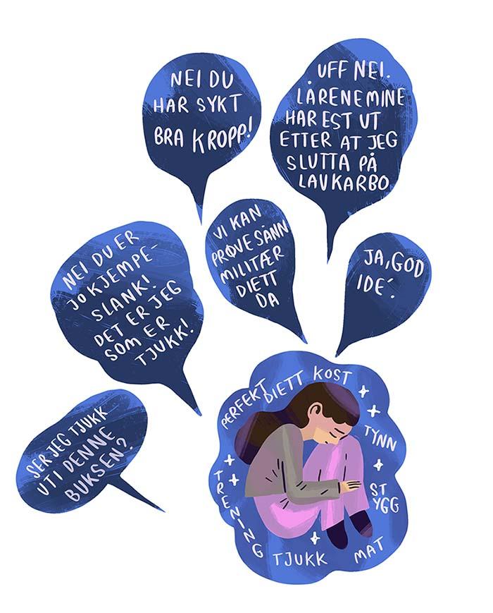 Nedsettende kommentarer om egen eller andres vekt, kropp og fasong betegnes som negativt kroppssnakk (på engelsk kalt Fat Talk) (Shannon & Miller, 2015). Fenomenet har blitt en vanlig del av dagligtalen vår, og kommentarer knyttet til egen kropp sitter som regel løst i sosiale sammenhenger – enten det er rundt lunsjbordet på jobb, foran speil i klesbutikker, eller innenfor husets fire vegger. Mange vil avfeie sine egne kommentarer som ufarlige og selvironiske – det skader vel ikke å snakke nedsettende når det kun er seg selv og egen kropp man snakker om?