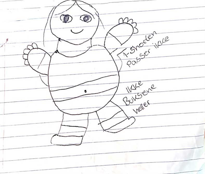 Min datter var nå fullt klar over at hun var unormal og overvektig og at hennes kropp ikke passet inn i dagens samfunn. Det hadde hun flere ganger fått bekreftet gjennom veiinger på helsestasjonen, hvor diskusjonene rundt vekt og mat ofte ble tatt over hodet på henne. Skammen og dårlig kroppsbilde satt dypt i henne i en alder av 5 år. Opplevelsen av å være annerledes og å være usikker i sin egen kropp var etablert i et barnesinn som allerede hadde nok å streve etter.